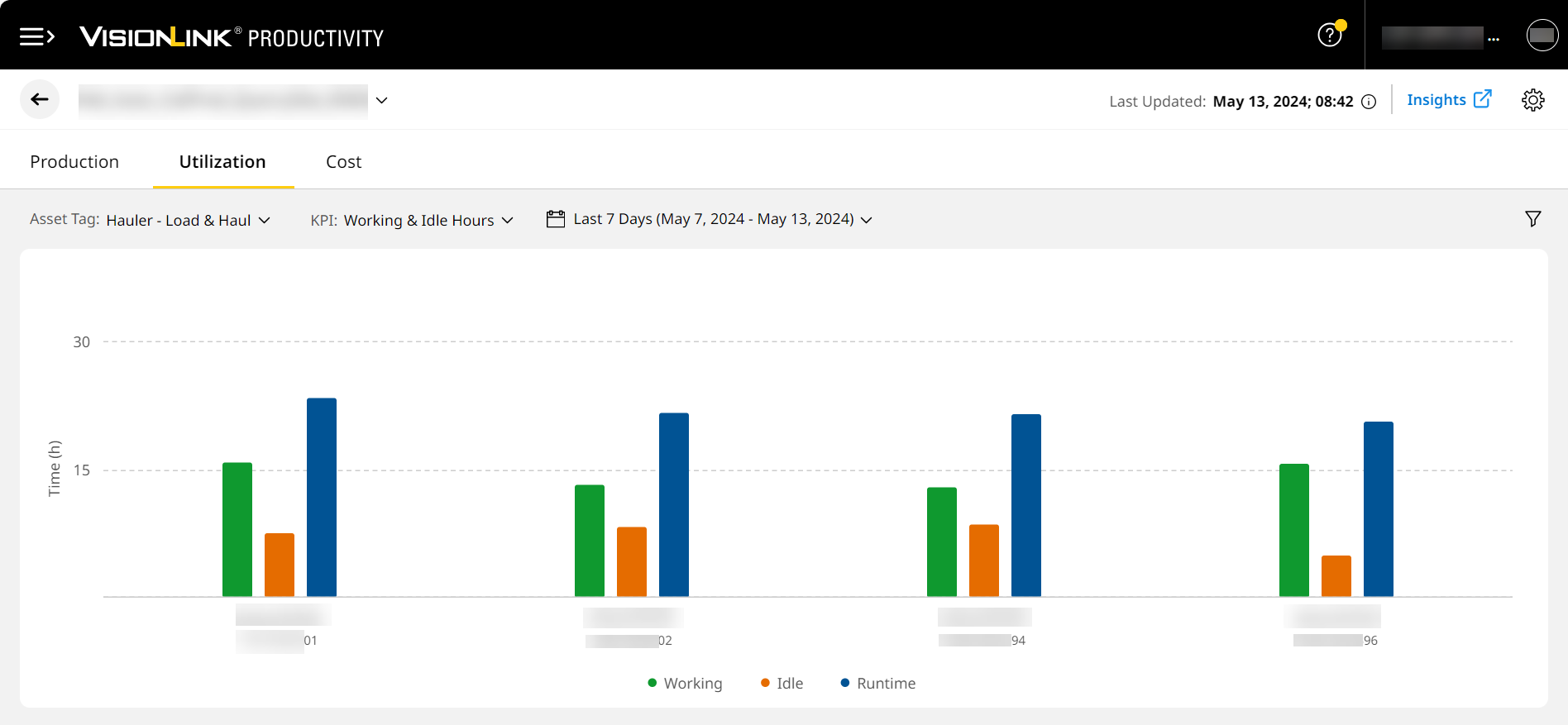 When selecting Working & Idle Hours KPI, the Site Summary Utilization chart view will now display a third bar representing runtime data. This is useful to measure utilization hours even when working or idle time data is unavailable.