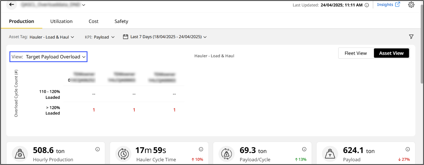 Available for Hauler – Load & Haul, Loader – Load & Haul and Load Out asset tags. Data is only available based on support by individual asset.