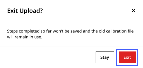 • On Exit Upload, click Exit to quit uploading. In this case, the old calibration file will continue to be in use.