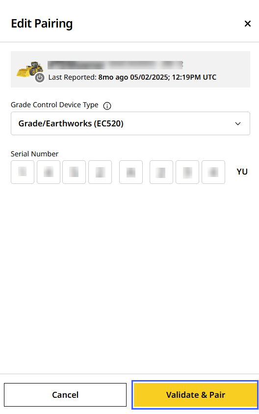 Modify the Grade Control Device Type and Serial Number of any asset already paired with a GCD.