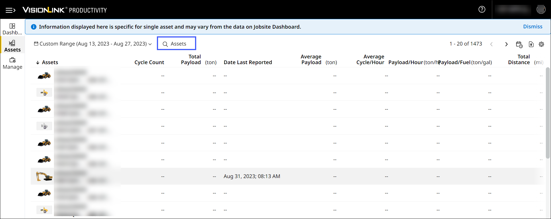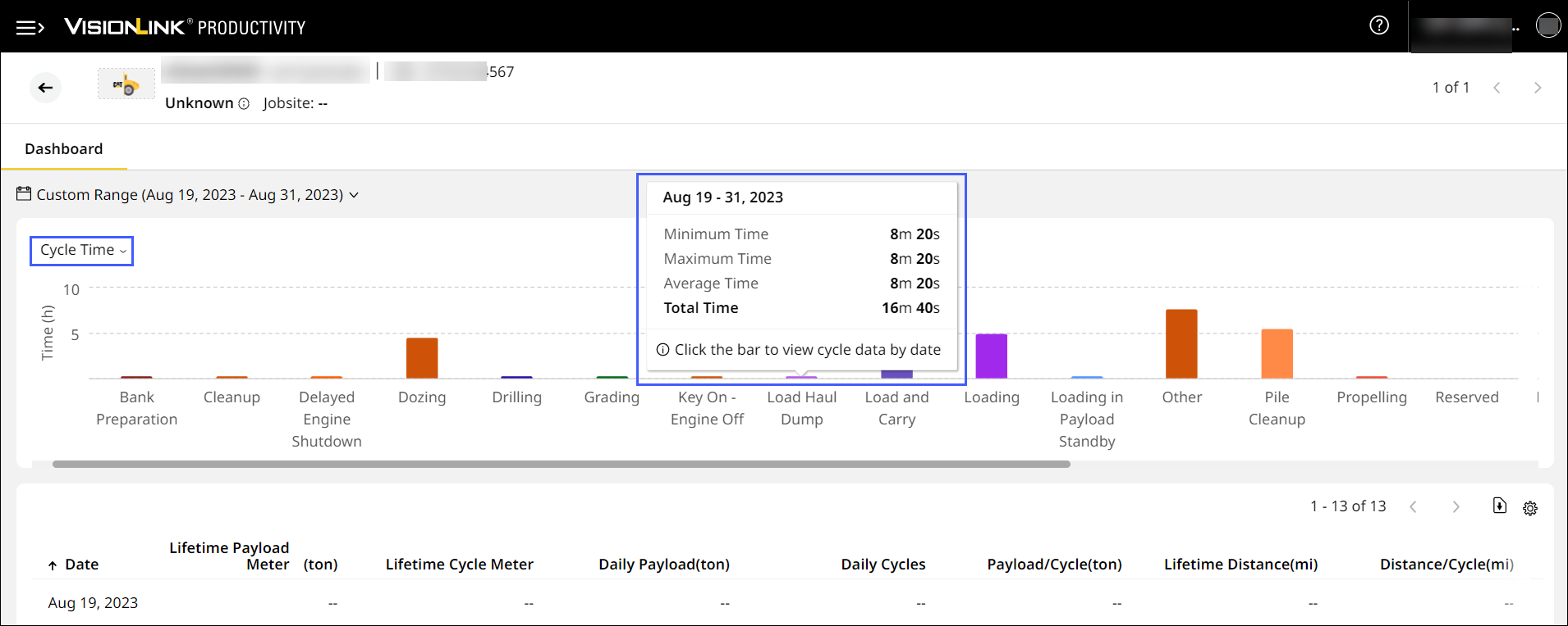 Productivity calculations as well as payload values will more closely reflect the values operators identify onboard the asset. Going forward, VisionLink Productivity’s features and reports will identify the most accurate payload value from multiple onboard sources and utilize that value for calculations. This is applicable for Loader - Load & Haul, Hauler - Load & Haul and Load Out asset tags. Estimated Payload configured when creating sites will be used for hauler assets that don’t report payload.