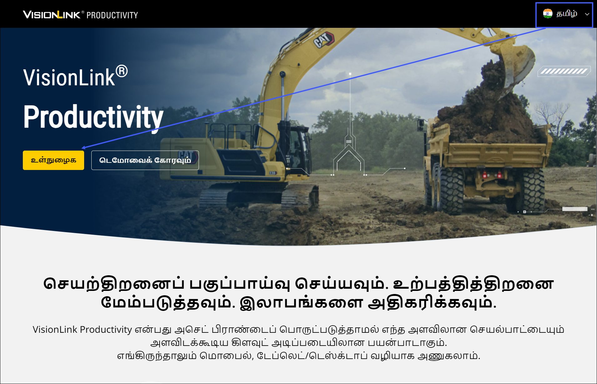 In addition to the 28 languages we support, you can now access VisionLink Productivity in Tamil as well. Click language drop down on Sign In to switch between your desired language(s). View the data in your language across Sites Dashboard, Assets and Manage.