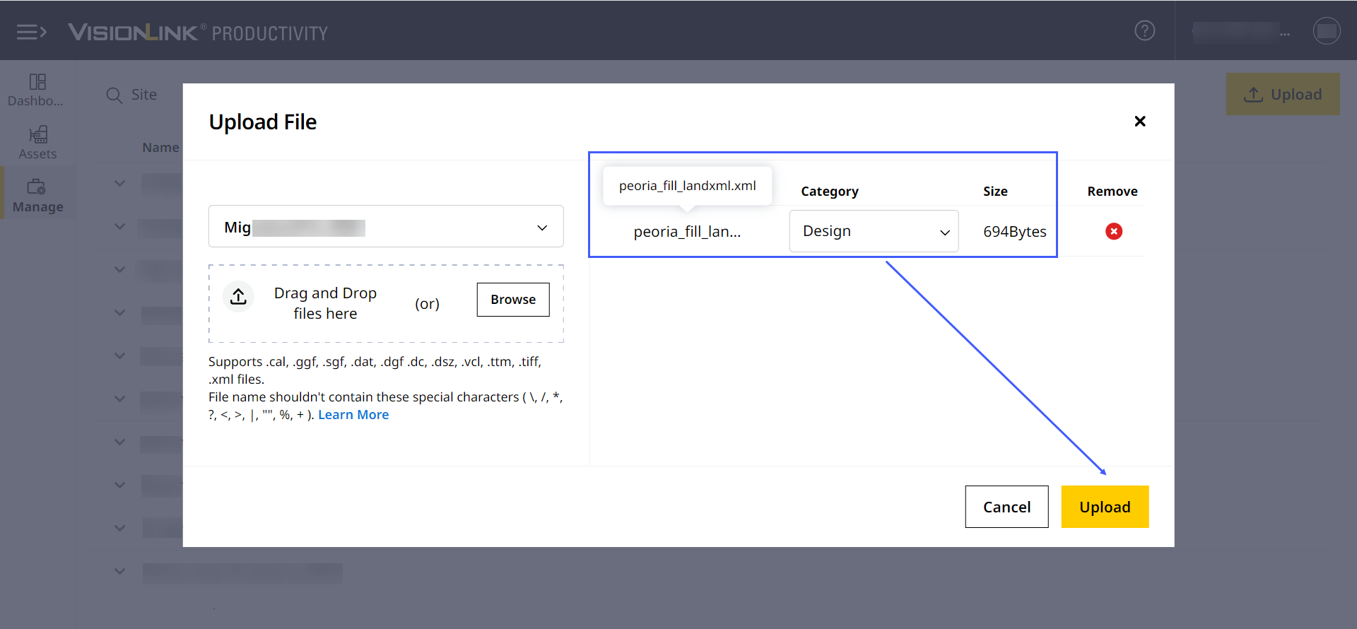 Now upload, sync to asset(s), download and configure landXML (.xml) files for download to USB device. This file type converts civil/survey work data into a text-friendly format for easy archiving and retrieval.